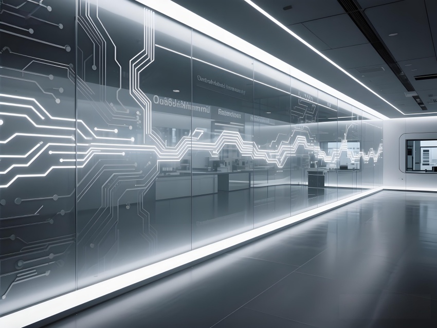 本實驗室采用"量子科技美學(xué)"設(shè)計,將納米尺度的精密感轉(zhuǎn)化為空間敘事。主實驗區(qū)以鏡面銀與深空灰為基調(diào),半透明防輻射玻璃墻體內(nèi)嵌電路板紋理光帶,象征微觀世界的電子軌跡。百級潔凈區(qū)的金色氣流箭頭與千級區(qū)的藍色光暈形成能級躍遷般的視覺分級,CVD設(shè)備艙的蜂窩狀散熱孔與懸浮式控制面板構(gòu)成未來工廠意象。地面導(dǎo)光纖維模擬分子結(jié)構(gòu)網(wǎng)絡(luò),天花板動態(tài)粒子監(jiān)測屏以數(shù)據(jù)流形式投射納米顆粒分布。通過冷調(diào)LED與設(shè)備熒光的層次照明,在滿足EMI屏蔽與化學(xué)防護需求的同時,創(chuàng)造出如同操作量子領(lǐng)域的沉浸式科研環(huán)境,透明氣閘門上的全息警示標(biāo)志進一步強化尖端材料研究的科技儀式感。