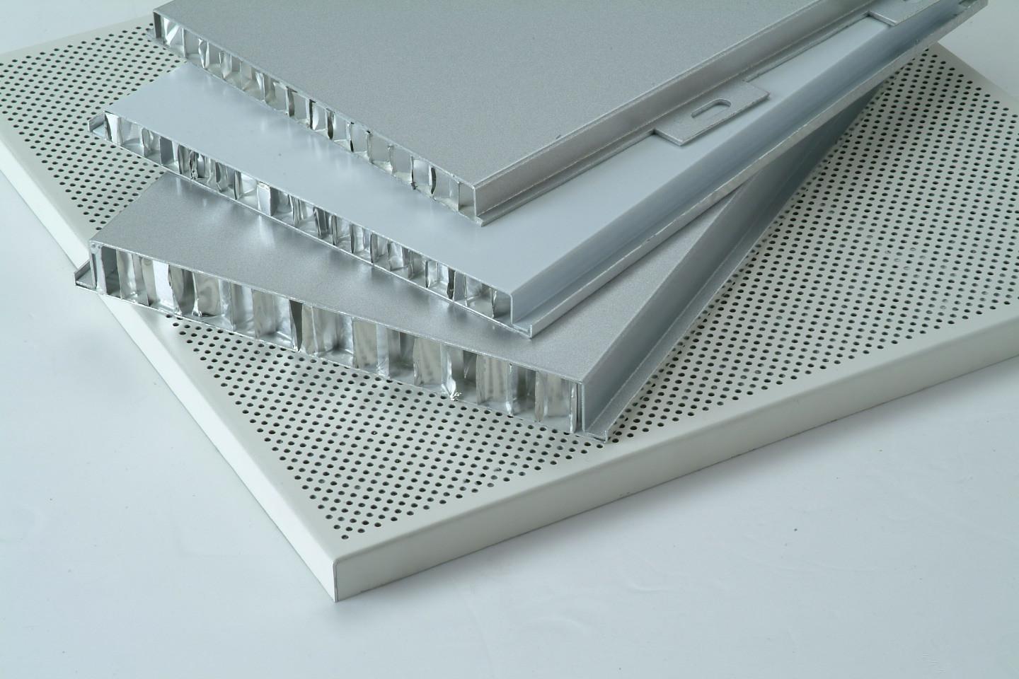 鋁蜂窩板表面采用經氟碳輥涂處理的鋁合金板材,中間是符合美國航空標準的鋁蜂窩,與傳統夾芯板相比,它具有重量輕,平直度好,外形美觀,節點科學,防火性能好,安裝方便等特點。